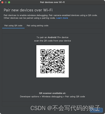 系统随即会显示 Pair devices over Wi-Fi 对话框,如图 2 所示。