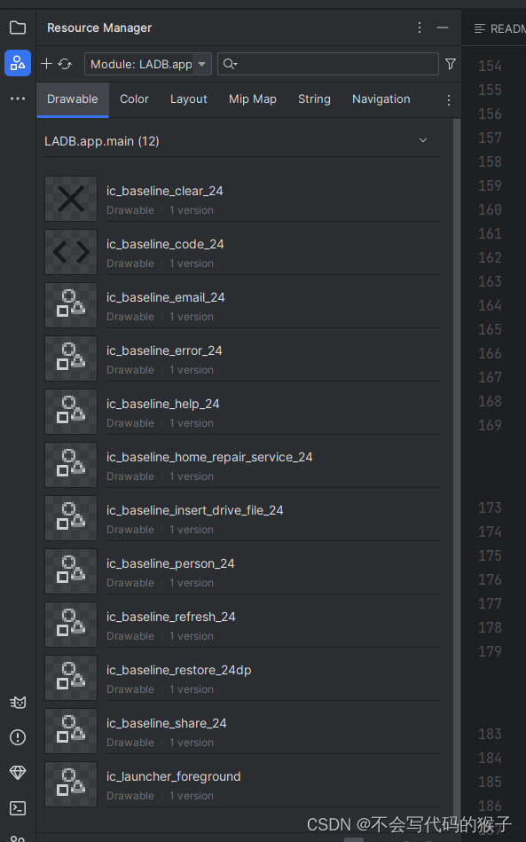 资源文件的按钮原来在旧版本的左侧下方位置,不过很多开发者可能更习惯在项目结构中找资源文件。
