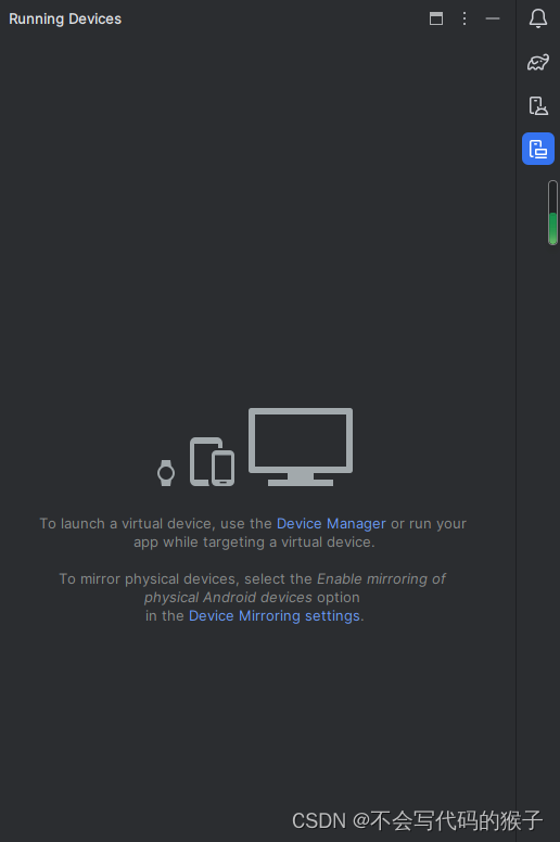 Running Devices则表示运行中的虚拟机(由AVD创建的,并运行了虚拟内核)