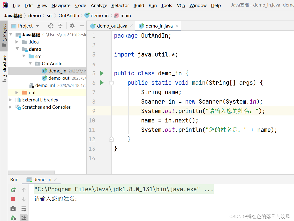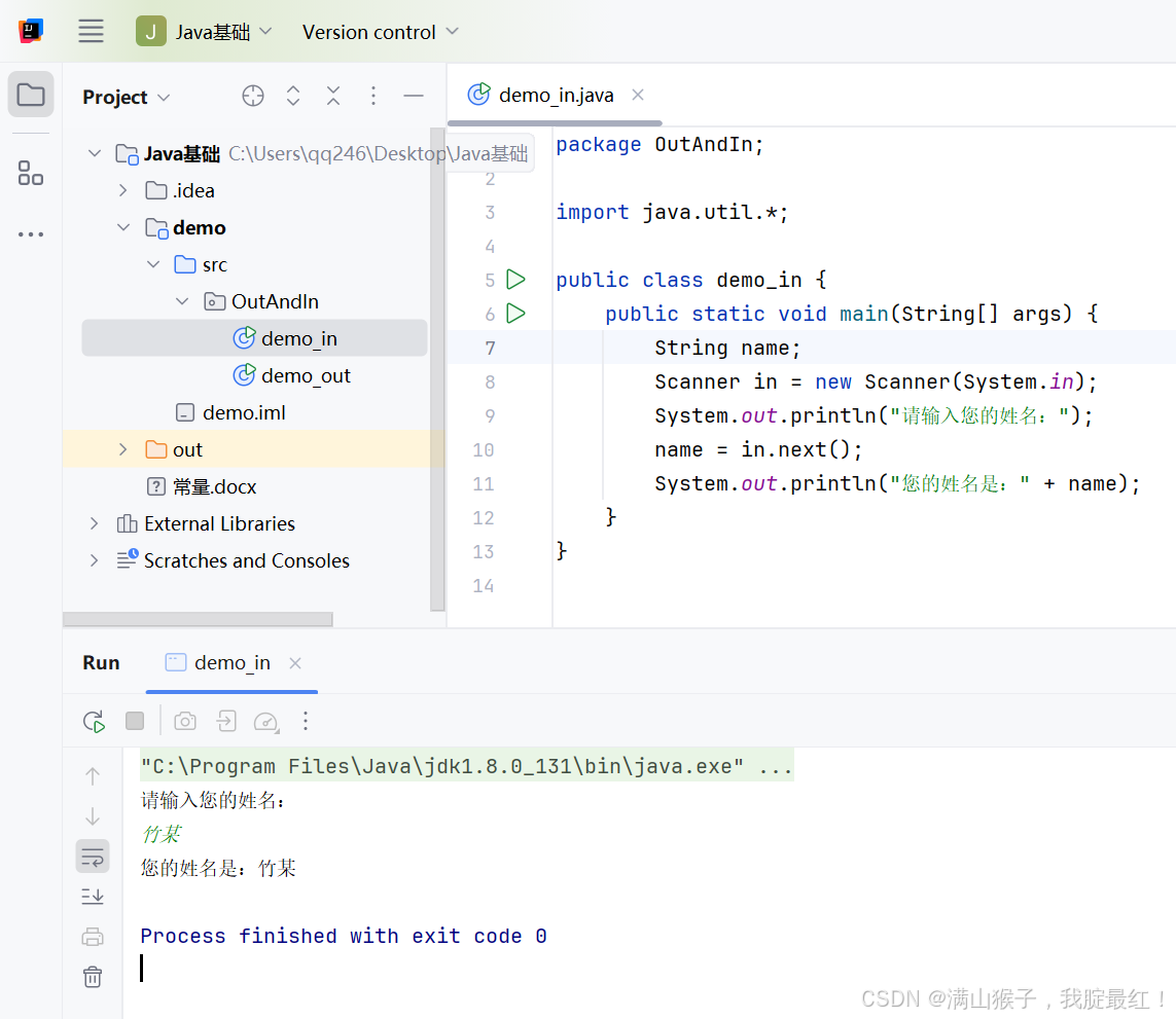 首先还是先看下面的案例,这个案例是让用户输入姓名后,再将姓名显示到控制台上。