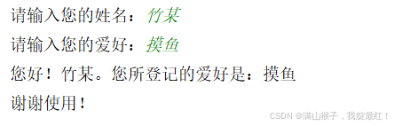 注: 绿色字体的为用户输入信息,红框圈出来的是读取出的用户输入的信息。