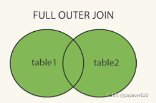 full join :左右表格的行全部都有,左右表格判断一致的在同一行,不一致的单独一行。