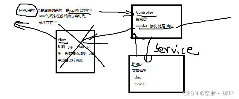MVC架构是后端的架构,是jsp时代的称呼,mvc的概念在前后端分离时代就不存在了