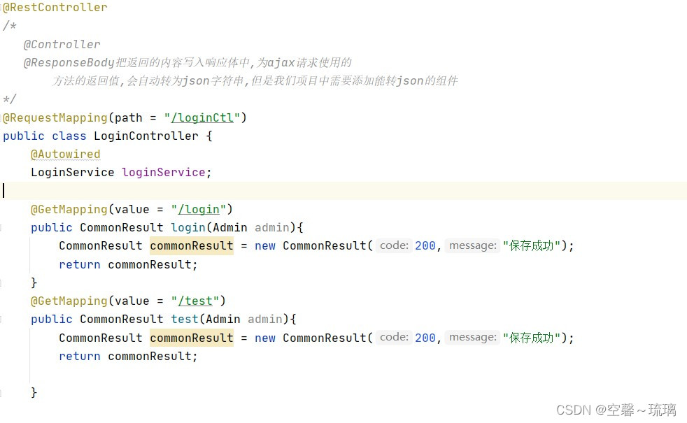 由于@RequestMapping中包含@RequestBody标签,所以方法返回结果默认是json格式, 并将json字符串写入到响应体返回一个对象时, 必须加入一个转json的第三方组件