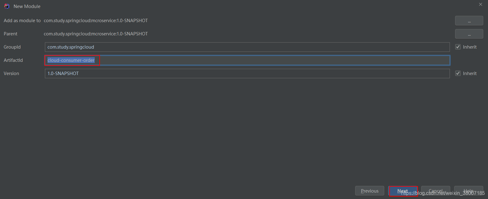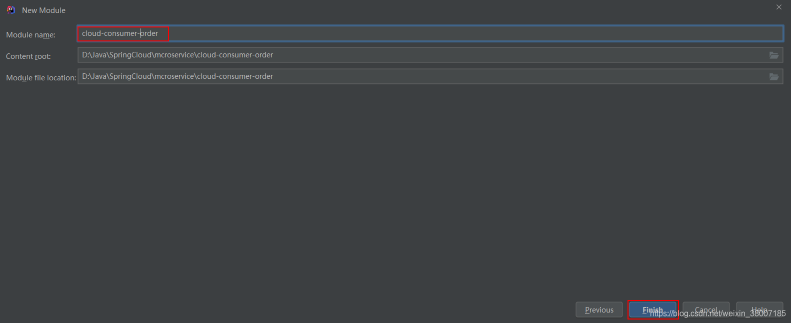 继续Next,确认工程名称,然后点击Finish完成订单服务工程创建。
