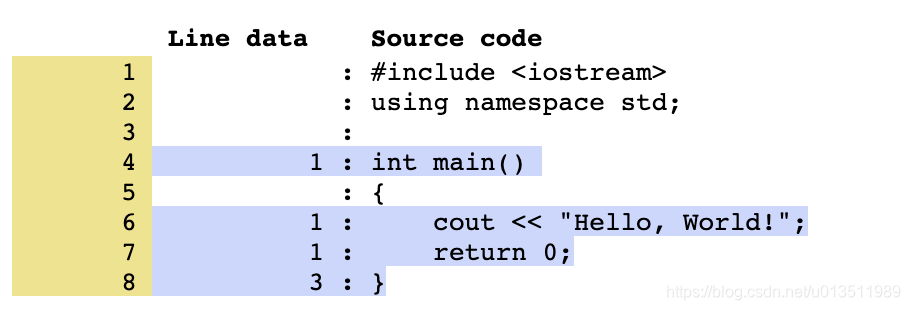 运行结束以后会生成存有具体覆盖率信息的文件hello.cpp.gcov。打开看里面的信息: