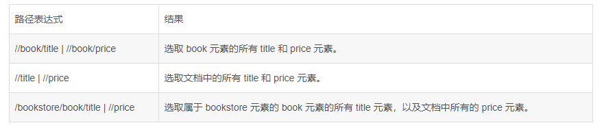 | /bookstore/book[price>35.00]/title | 选取 bookstore 元素中的 book 元素的所有 title 元素,且其中的 price 元素的值须大于 35.00。 |