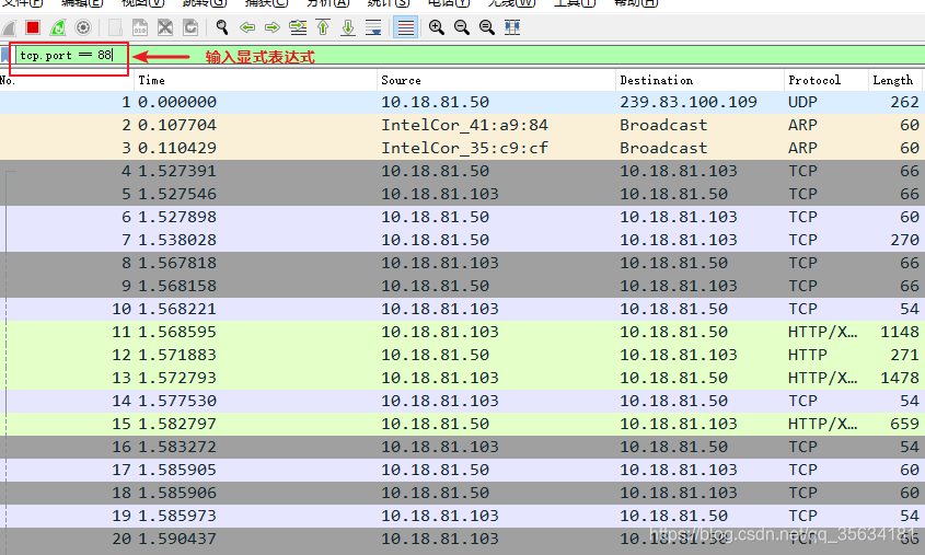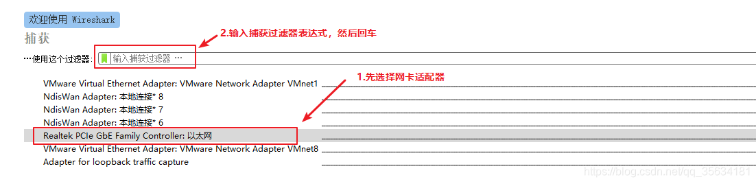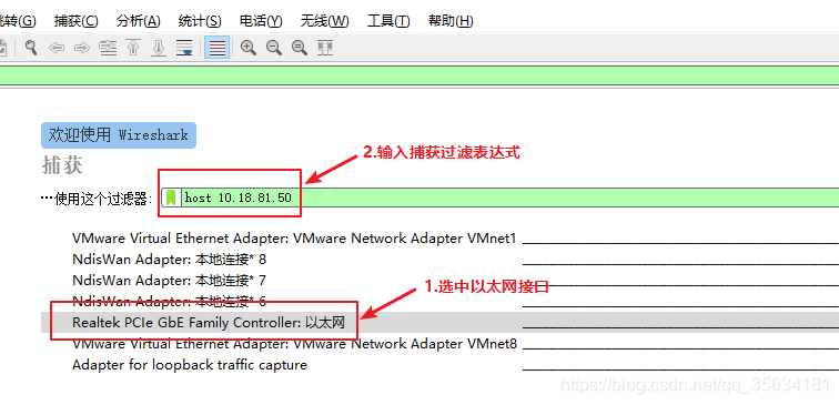 1.在使用Wireshark时,首先需要使用捕获过滤器先过滤我们感兴趣的请求,字面意思理解一下什么是捕获过滤器?我的理解就是使用捕获过滤器来捕获我们感兴趣的。