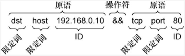 可以看到一个捕获过滤器表达式可以由一个或多个原语组成,其中原语包含一个或多个限定词,然后跟着一个ID名字或数字。