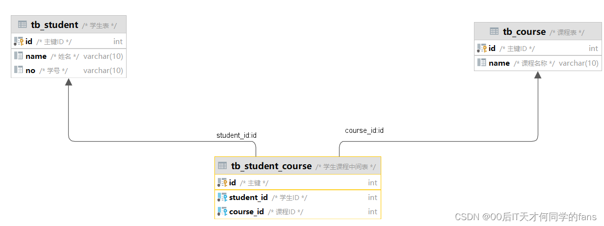 多对多的关系再开发中也是比较常见的,比如说像老师与学生的关系,一个学生可以有多个代课老师,一个代课老师也可以有多个学生。再比如,学生与课程的关系,一个学生可以选修多门课程,而一门课程也可以供多个学生选修。