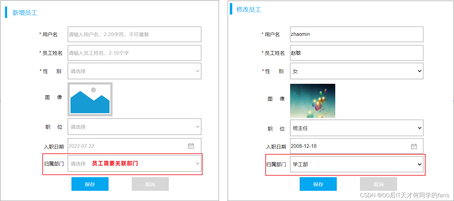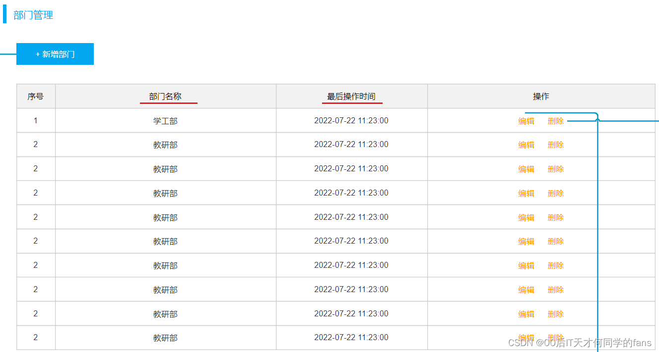 需求:根据页面原型及需求文档 ,完成部门及员工的表结构设计