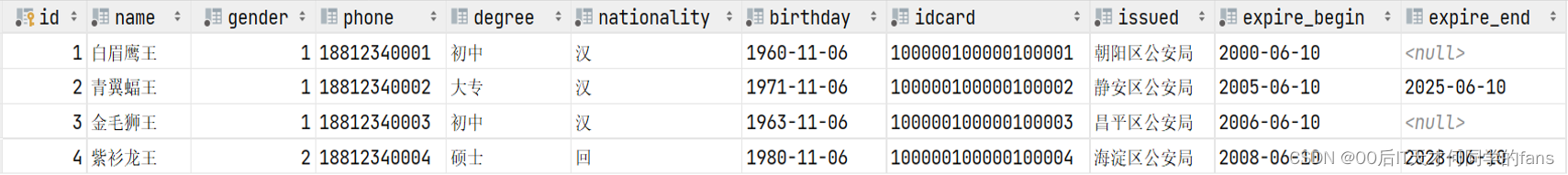 基本信息:用户的ID、姓名、性别、手机号、学历