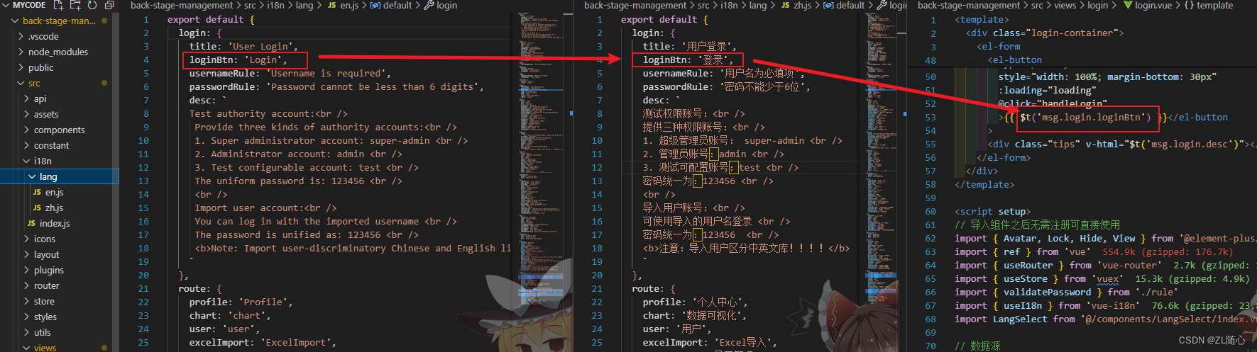 主要是切换国际化,这里简单文字代替,实际使用的话就根据自己的需要搞,文件中有相关vuex代码,都会放在开头仓库里面。