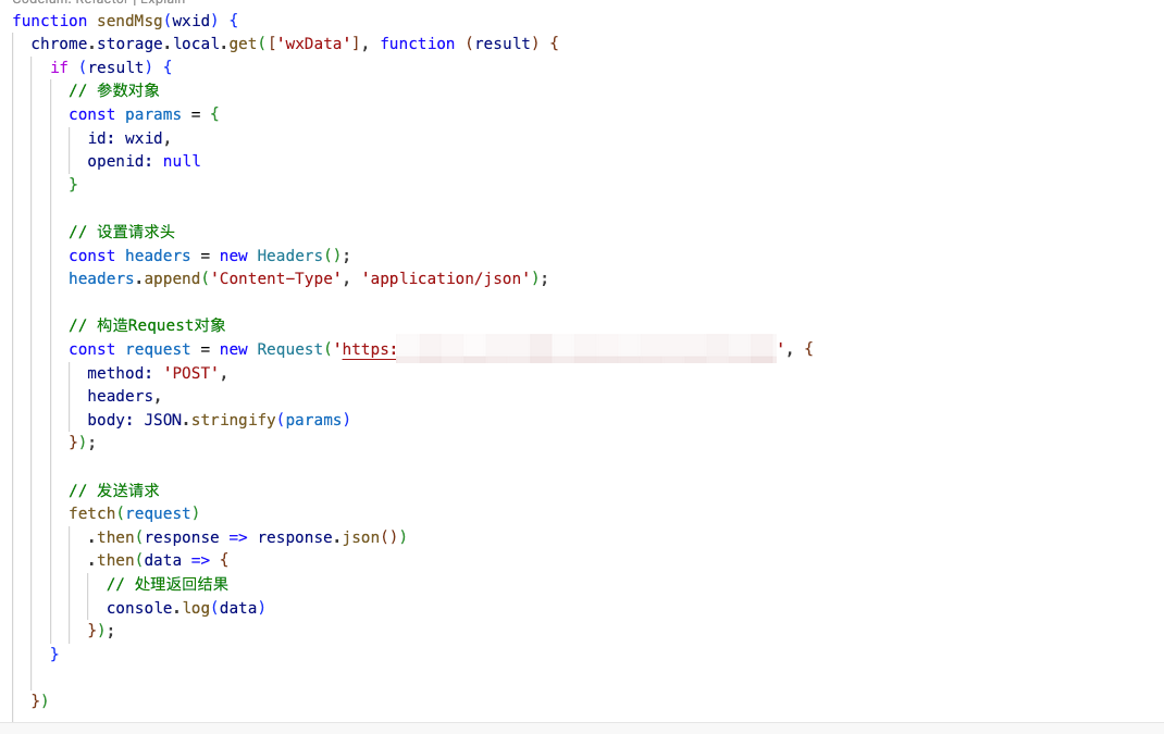 实现思路是:content.js 使用chrome.runtime.sendMessage 发送消息,background.js 使用 chrome.runtime.onMessage.addListener 方法进行监听,当监听收到发送的消息时,我们在background.js 上进行请求调用