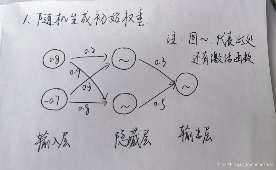 首先要给定输入、输出、各层之间的权值及偏置。