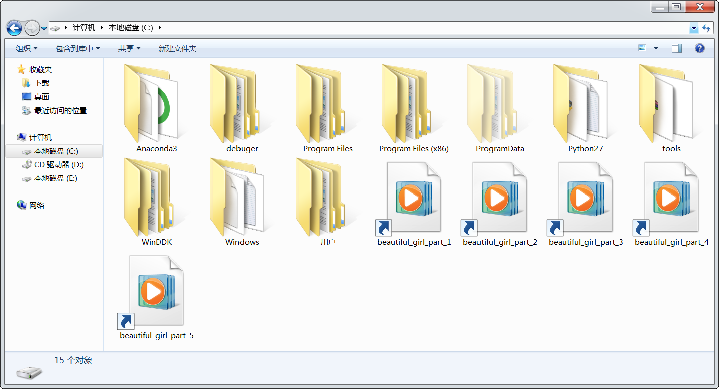 (这是双击beautiful_girl_part_[1-5].lnk的情形)