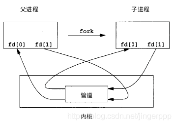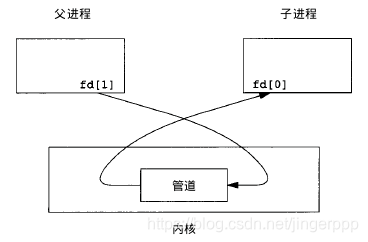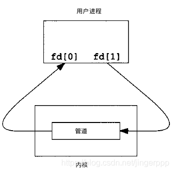 经由fd返回两个文件描述符:fd[0] 为读而打开,fd[1]为写而打开。fd[1] 输出是 fd[0]的输入。