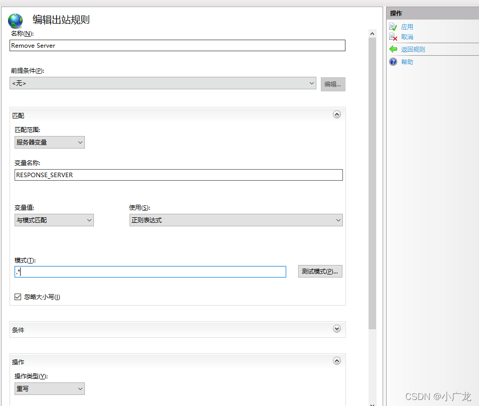 2.创建出站规则页面的变量名称(Variables Name)填写 同步为 RESPONSE_X-ASPNET-VERSION