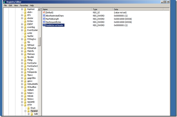HKLM\SYSTEM\CurrentControlSet\Services\HTTP\Parameters
