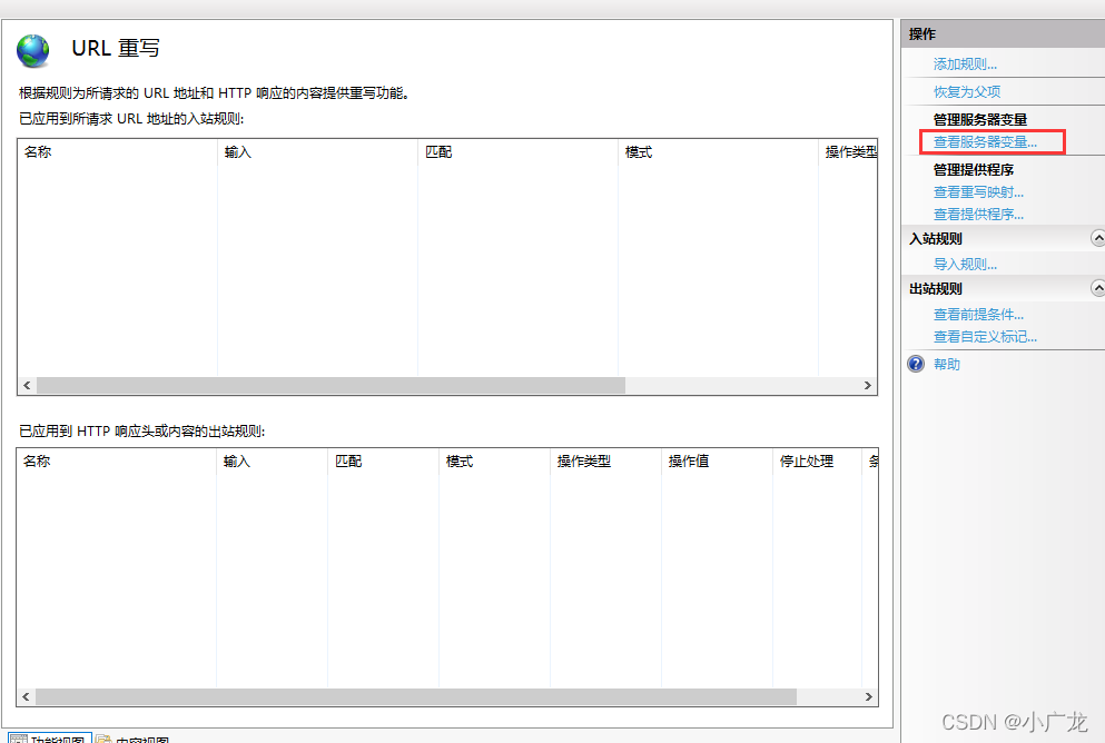 2.在相应站点的URLRewrite 功能里添加服务器变量(改哪个就设置哪个):