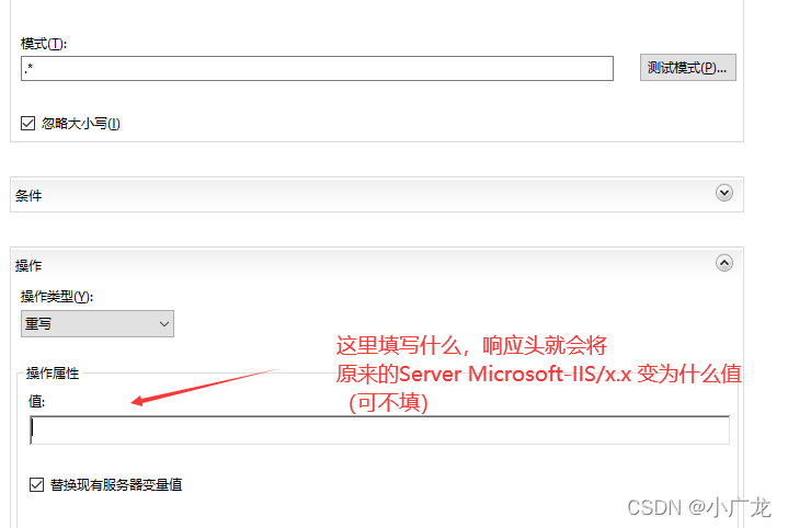1.建立的服务器变量(View Server Variables)名称为 RESPONSE_X-ASPNET-VERSION