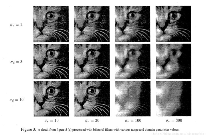 其次,sigma_d 表示的是空域的平滑,因此对于没有边缘的,变化慢的部分更适合;sigma_r 表示值域的差别,因此强调这一差别,即减小 sigma_r 可以突出边缘。