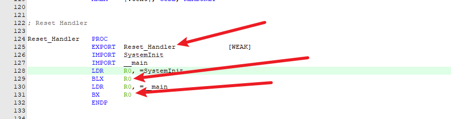 汇编启动文件,主要做了堆栈空间分配,更新MSP指针,跳到Reset_Handler执行,执行SystemInit并返回,再执行到__main,虽然会执行到main函数,但是这个__main和main函数是不一样,再跳到main函数时,还会做一些操作,例如初始化系统的堆和栈。