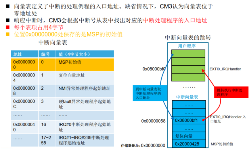 向量表中的MSP初始值和复位向量: