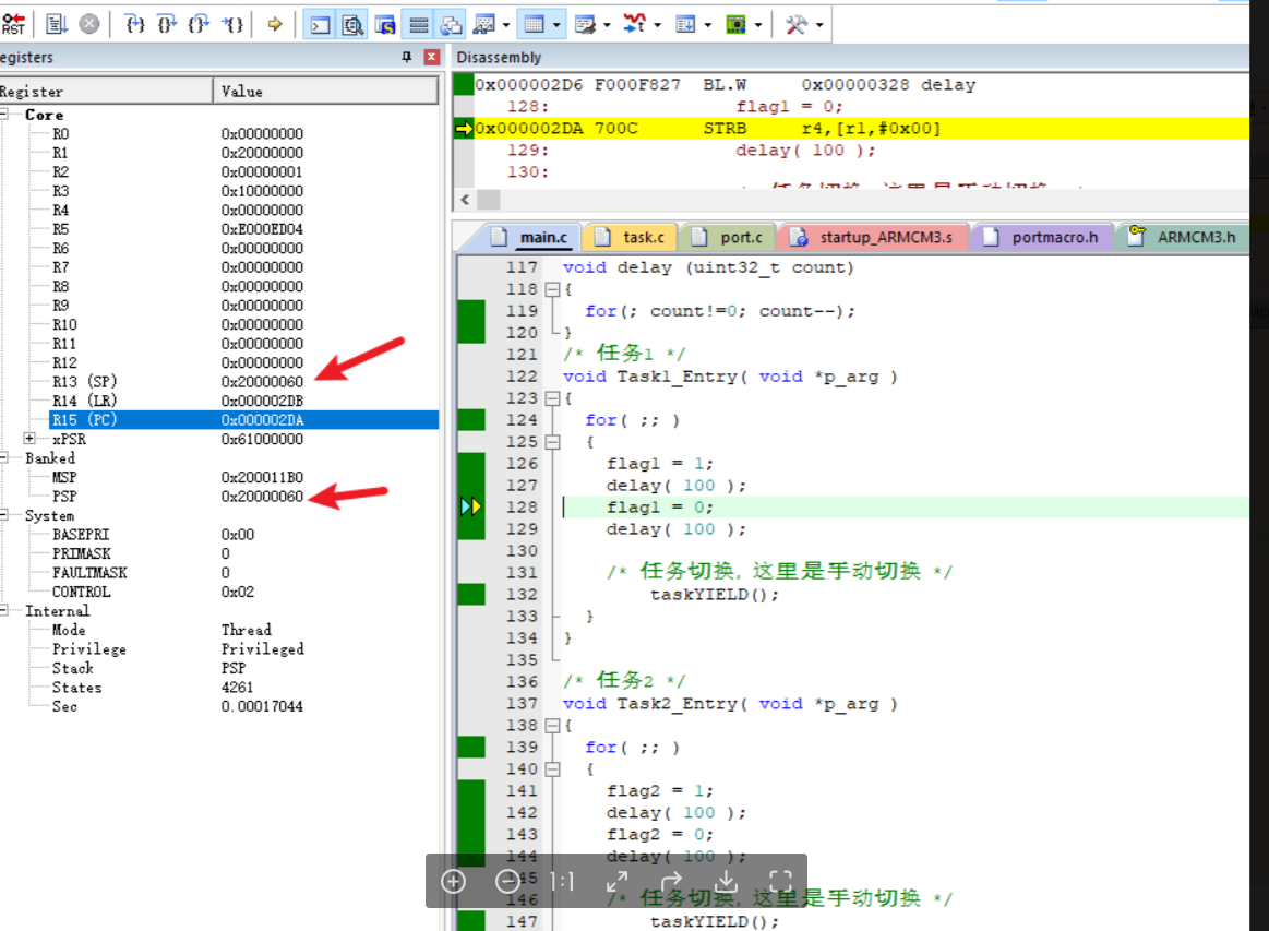 栈顶指针-2 任务线程函数指针 PC