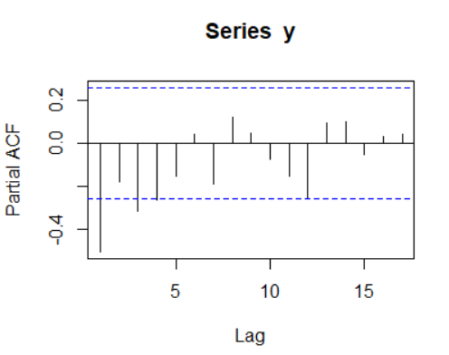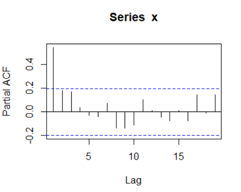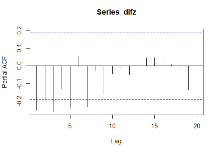 如图,,从2阶开始基本都在二倍标准差区间内,所以是1阶截尾。