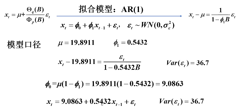综上,由自相关系数和偏自相关系数是AR(1)模型