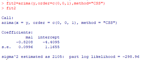 fit2=arima(y,order=c(0,0,1),method="CSS")