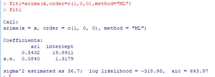 fit1=arima(x,order=c(1,0,0),method="ML")