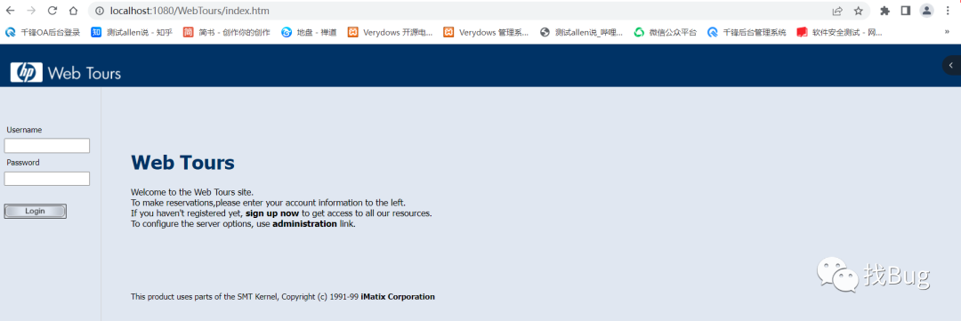 6、chrome浏览器中输入:http://localhost:1080/WebTours/index.htm