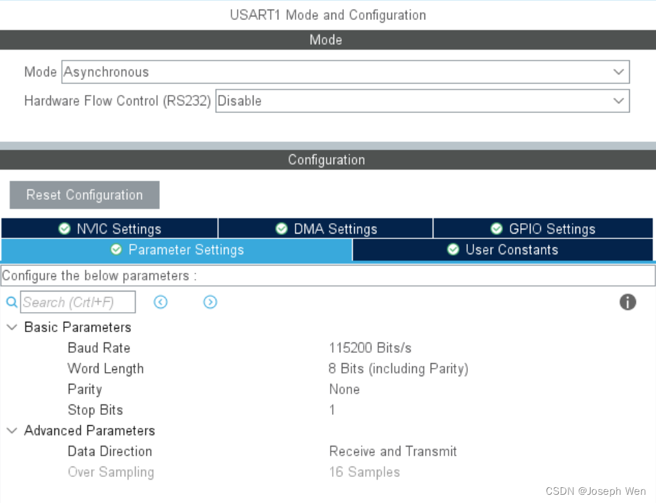 配置串口1,波特率115200、数据位8、停止位1、奇偶校验none