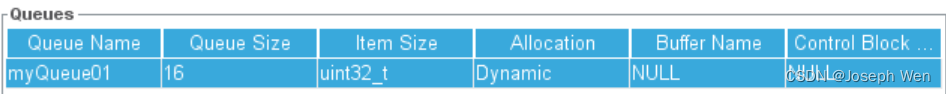 创建一个队列,队列长度16(能存放16个数据),每个数据占32位