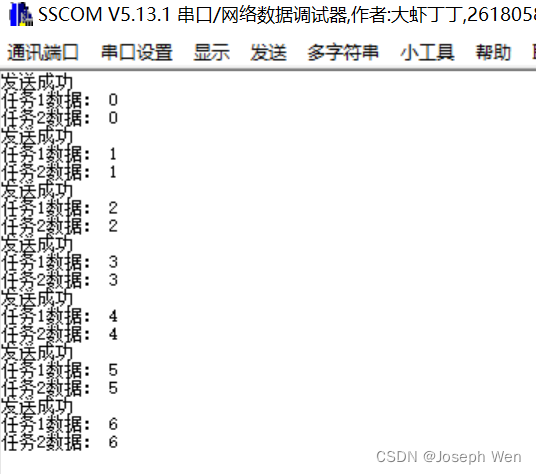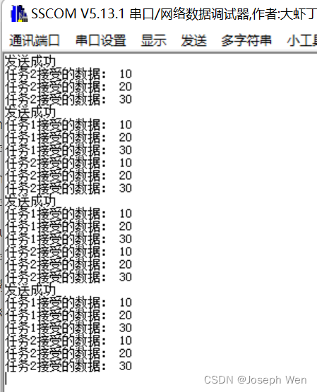 按键按下,任务Task_01和任务Task_02接受到队列中的数据并打印出来