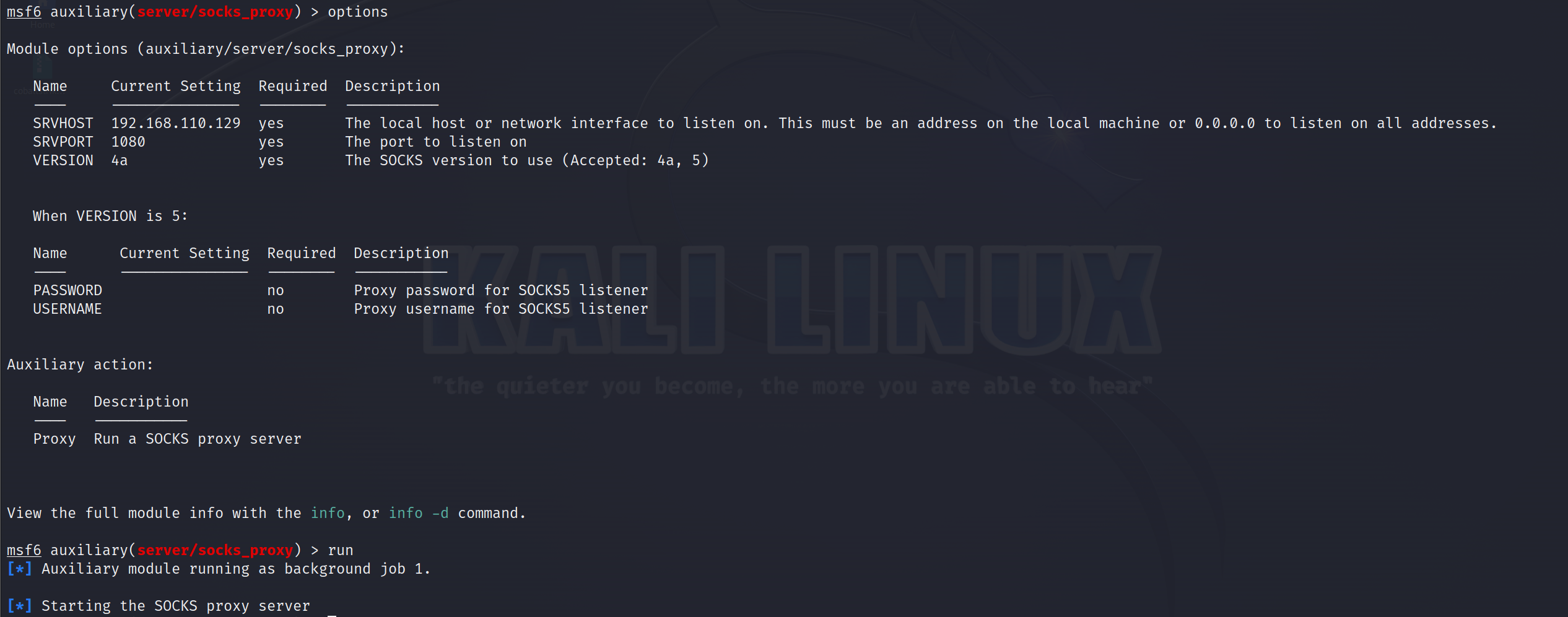 通过MSF建立socks代理的措施我们知道,首先需要部署一个socks服务,然后kali去连接这个服务,frp也是同样的道理
