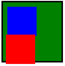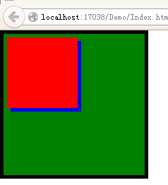 这时候,我们会发现问题,两个子Div 都设置了 绝对定位,他们是相对于哪个元素发生了偏移呢?