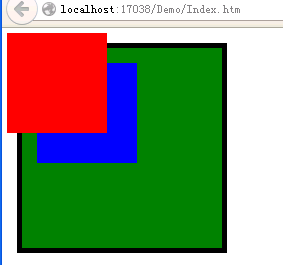 我们发现,由于我们对Sub1进行了绝对定位,Sub1的位置发生了偏移,而同级Div Sub2,则占据了Sub1的位置,并且Sub1遮挡了Sub2.