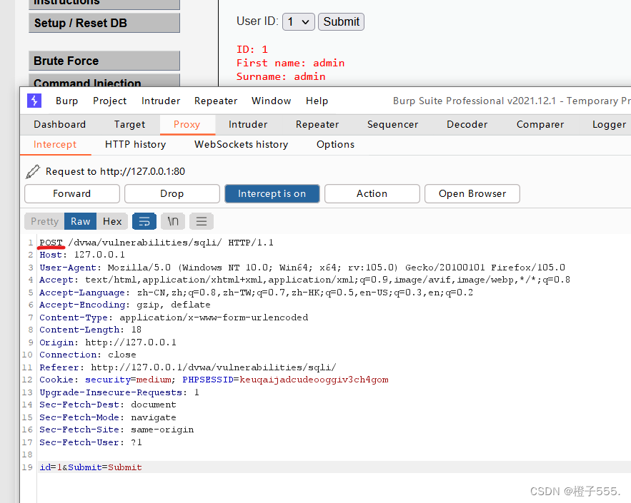 我们利用burpsuit抓包分析, 来查看post方式提交的数据。