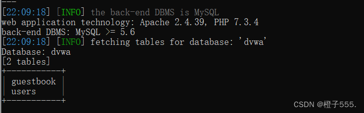 查看数据库中存在的表,命令格式为:sqlmap -u 目标网址–tables -D 数据库名