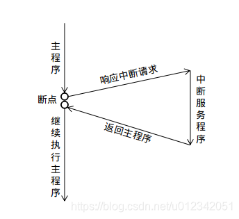 能够实现中断处理功能的部件称为中断系统;产生中断的请求源称为中断请求源(或中断源);中断源向CPU提出的处理请求,称为中断请求(或中断申请)。当CPU暂时中止正在执行的程序,转去执行中断服务程序时,除了硬件自动把断点地址(16位程序计数器PC的值)压入堆栈之外,用户应注意保护有关的工作寄存器、累加器、标志位等信息,这称为保护现场。在完成中断服务程序后,恢复有关的工作寄存器、累加器、标志位内容,这称为恢复现场。最后执行中断返回指令RETI。从堆栈中自动弹出断点地址到PC,继续执行被中断的程序,这称为中断返回。