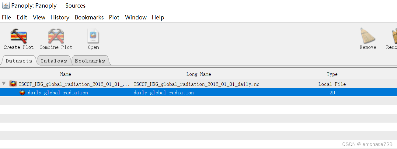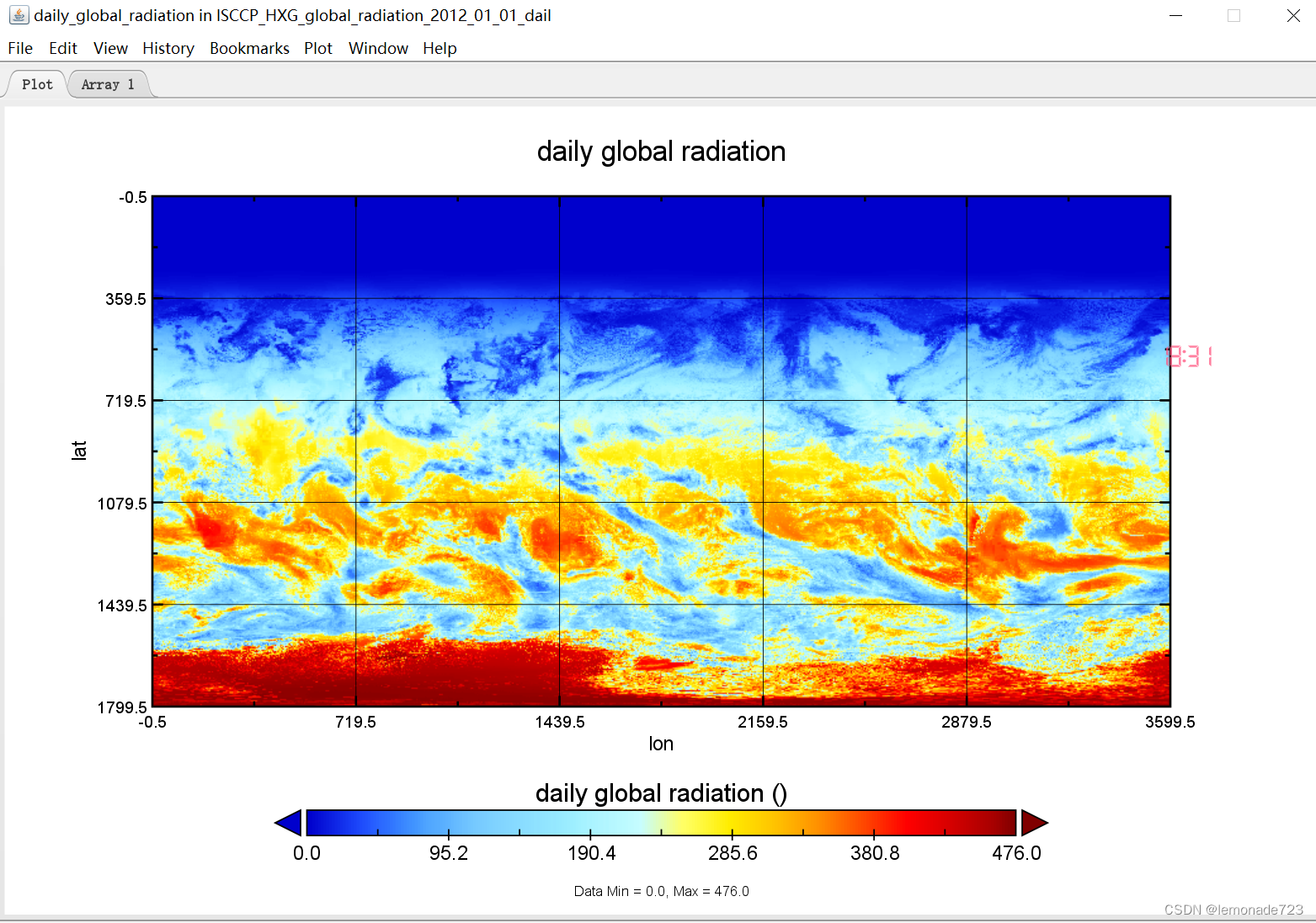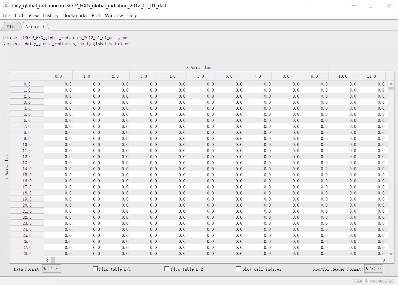 像元所在数据列行号是根据软件Panoply确定的,具体的下载、安装及配置参考以下文章。