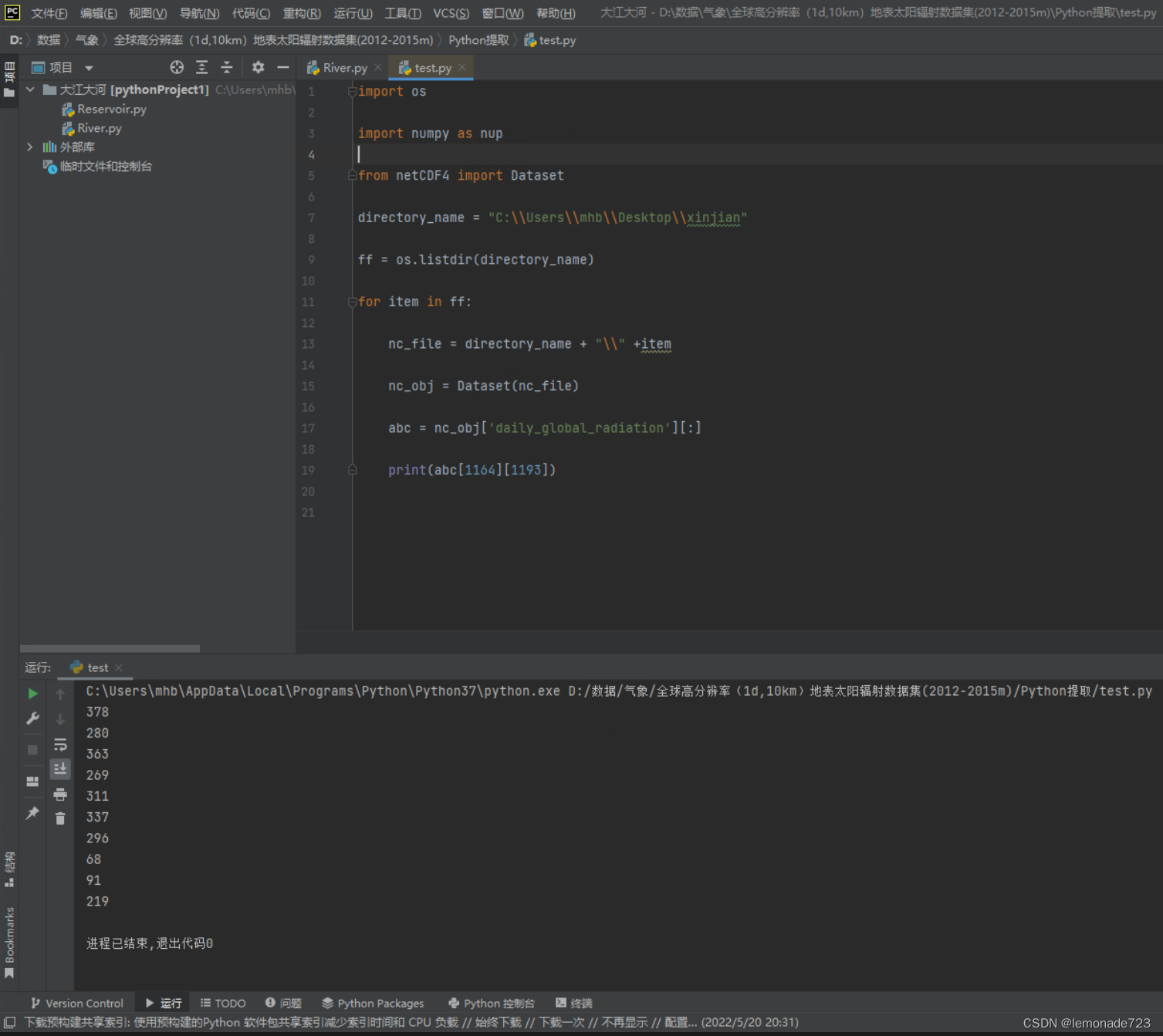 数据格式是nc,本文采用Python进行数据提取(仅单个像元单年份或多年份的提取,多个像元暂时不知道如何提取,也由于暂时用不到,因此没有深入研究,欢迎各位老师指教)。