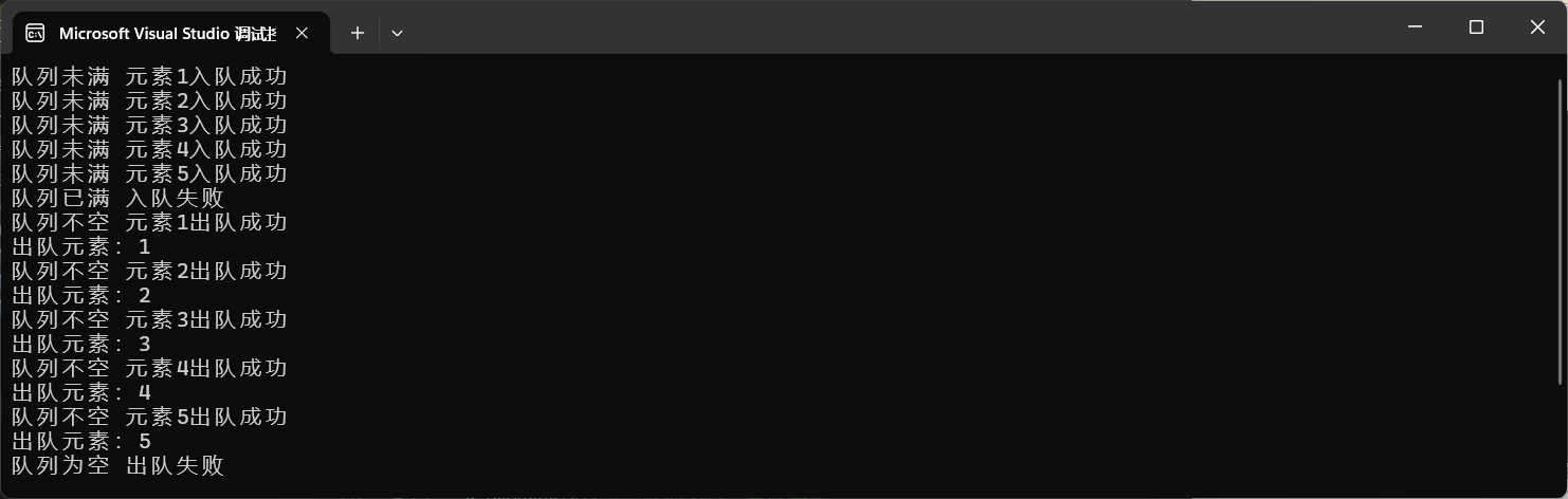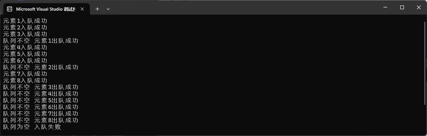 cout << " 元素" << x << "入队成功" << endl; return true;