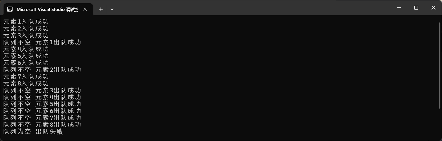 q.DeQueue(x); cout << "出队元素:" << x << endl;