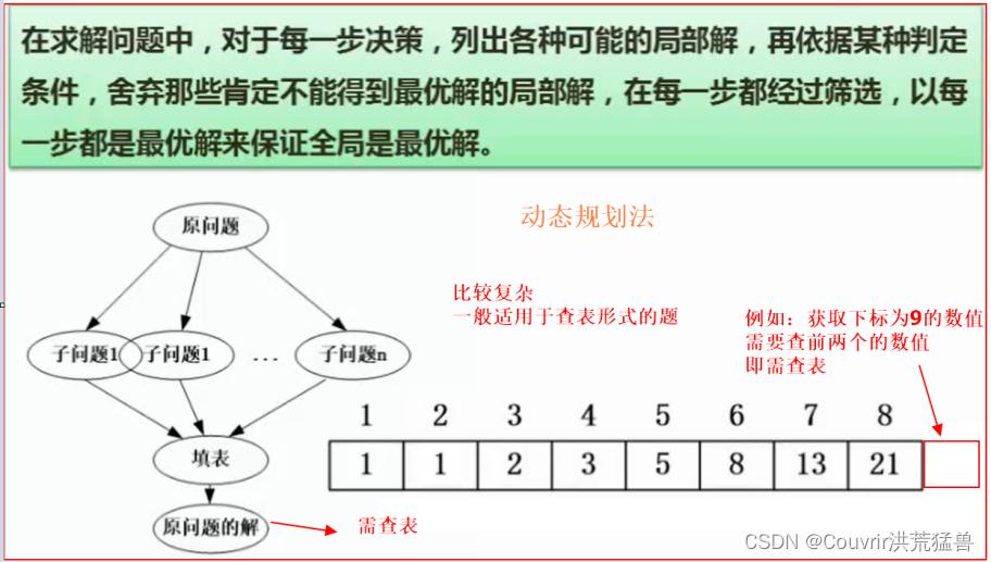 递归方法也适用于动态规划法,需要题目具体分析。