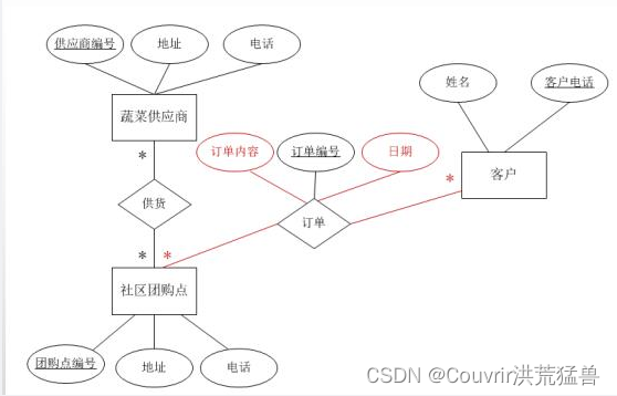 外键: 供应商编号、团购点编号