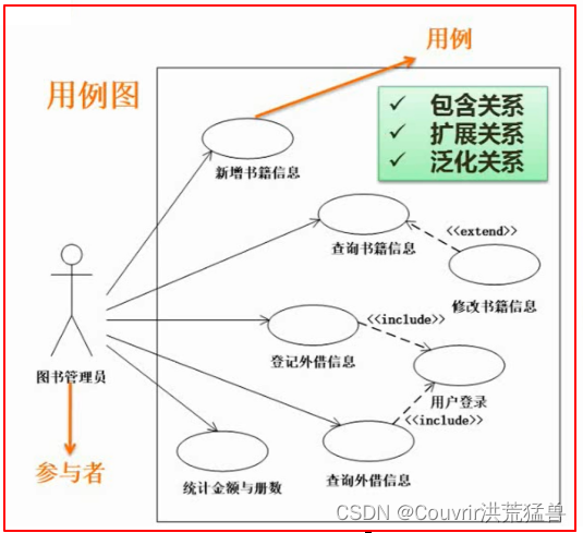 参与者:人、物、系统。用例图=参与者+用例。